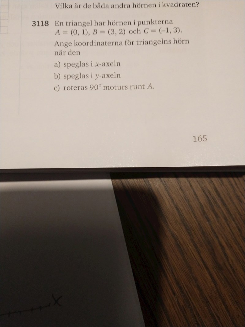 Det är svårare då jag inte visste hur man skulle spegla en punkt som redan ligger på axeln. Vad är definitionen av att spegla i det här fallet, igen aning. Dom tar inte upp det. Men det säger väl sig självt egentligen.