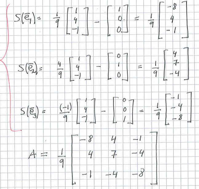 S(e1) är speglingen av basvektorn e1 = [1 0 0]T. S(e1) utgör den första kolonnen i (standard) matrisen för speglingen S. Den k:te kolonnen av matrisen ges av S(ek).