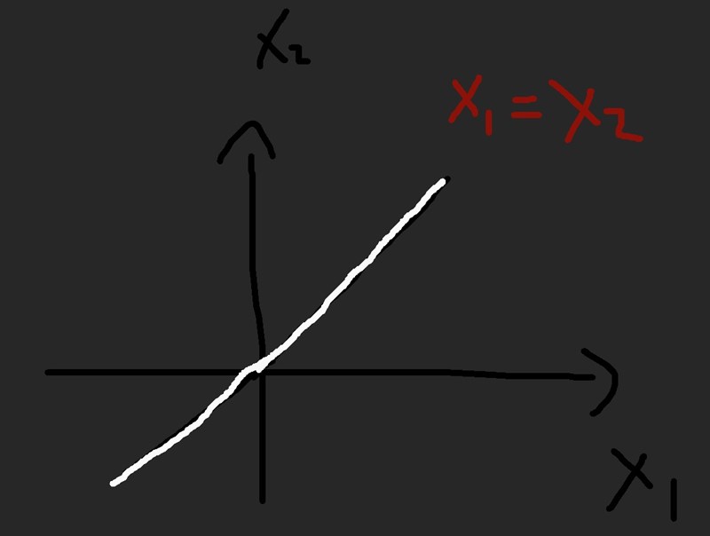 (jag föreställer mig att jag tittar ner på planet x1=x2, dvs så ser det ut som en linje då)