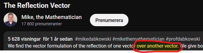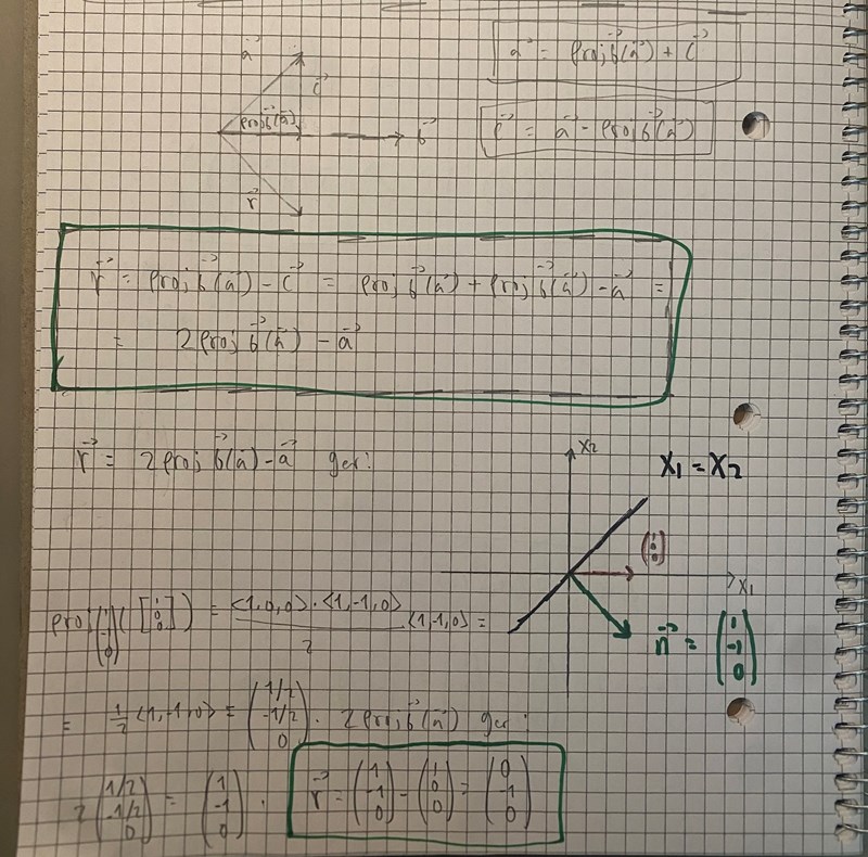 Såg denhär formeln: a 2projb(a) - a , där a är inputvektorn och 2projb(a) - a är vektorn a:s reflektion.... men gäller det för alla speglingar? https://youtu.be/BCmFsYFln2k?si=QmG06Glgr3W9UU-r