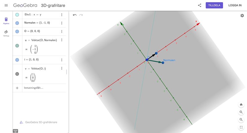 Bedinsis skrev:Just det, en normal är <-1,1,0>.