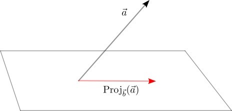 Vektorn a - projb(a) kommer motsvara a minus a:s projektion på vektorn b. Vektorn b var planets normal, så genom att jobba på detta viset kommer vi endast ha kvar de bitar i a som har en utsträckning i planet, eftersom vi projicerat bort de bitar som har en utsträckning utanför planet.