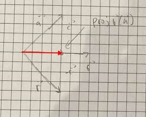 Rita upp en bild om du känner dig osäker. Hitta på ett a, rita upp dess vektor, rita upp dess projektion på normalen b, dvs. projb(a).