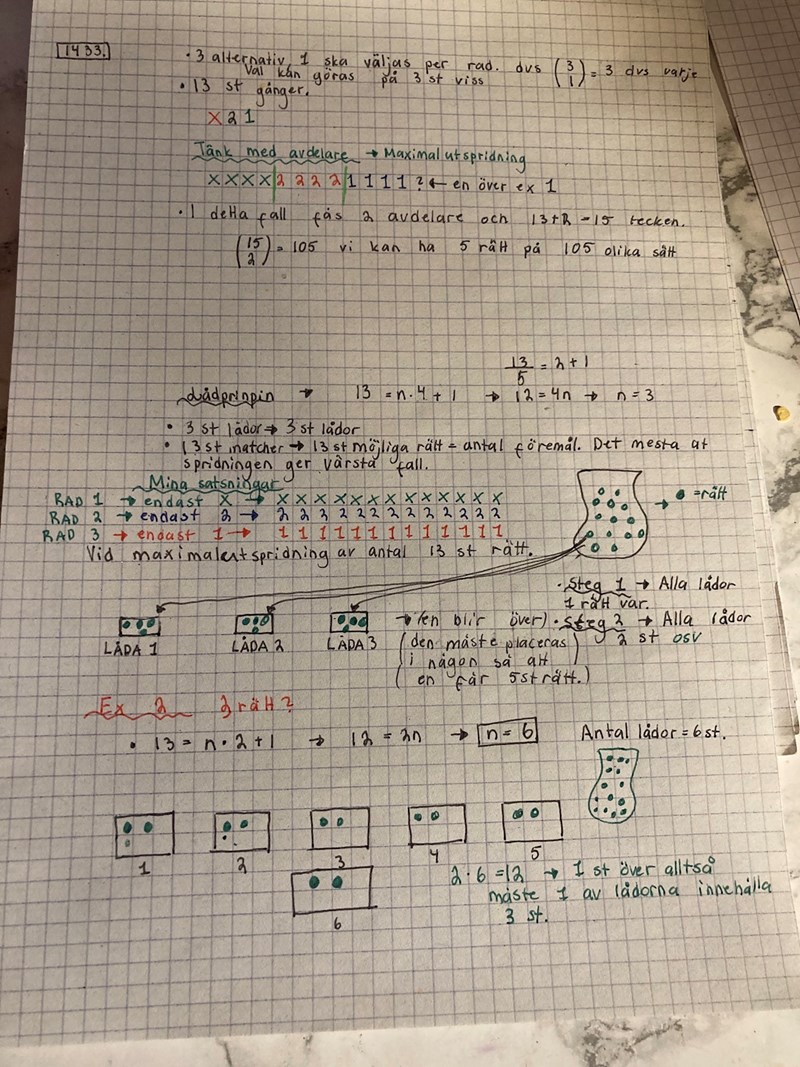 Frågan är alltså hur många rader (dvs spel) måste du göra för att vara säker på att få minst 5 rätt på någon av dina rader.