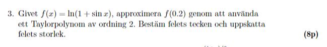 I facit valde man att approximera polynomet runt punkten , och då fick man . Jag valde dock att approximera polynomet runt , och då blev felet istället ca. . Har jag också fått "rätt svar", bara att jag utvecklade funktionen i en annan punkt?
