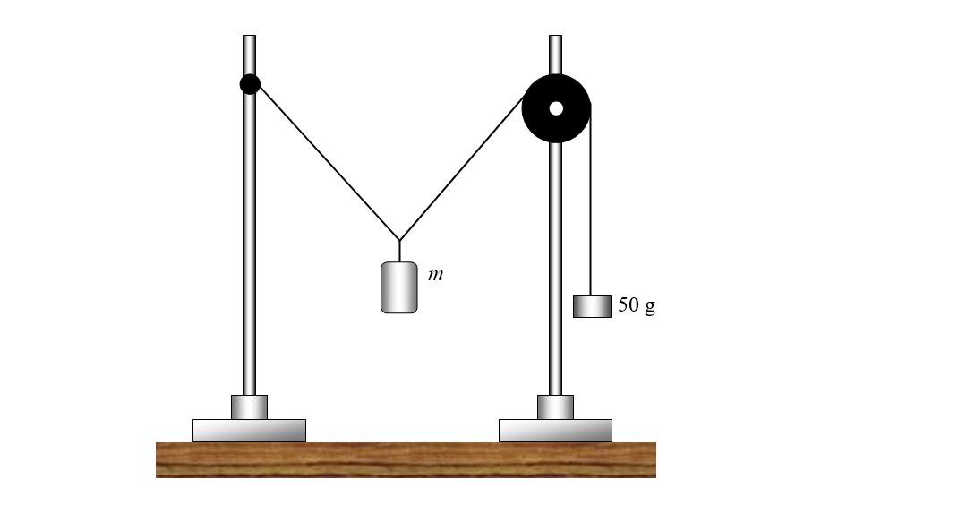 Vi skulle bestämma massan på kroppen i mitten. Vi visste att vikten längst åt höger väger 50 gram, och  vi mätte två längder för med hjälp av phytagoras sats kunna bestämma normalkraften på mittenföremålet.