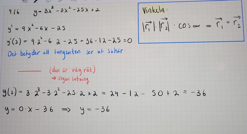 Du har fått fram rätt svar, men inte rätt m-värde för tangentens ekvation. f(2) är inte lika med 1.