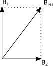 T.ex om du har magnetfält från två källor som är vinkelräta mot varandra får du ett resulterande magnetfält som det här: