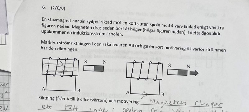 Hej! När jag gör så att fingrarna går från vänster till höger får jag att tummen pekar uppåt, dvs strömmen går uppåt men betyder det att den går fram a->b eller b->a det beror ju på hur man tolkar uppåt för den kan ju gå uppåt på framsidan och baksidan av spolen så exakt hur ska man tänka