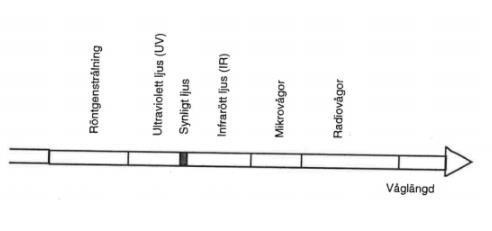 Ljus är den synliga delen av elektromagnetisk vågrörelse. I figuren ovan kan du se synligt ljus bara är en liten del av all elektromagnetisk vågrörelse.