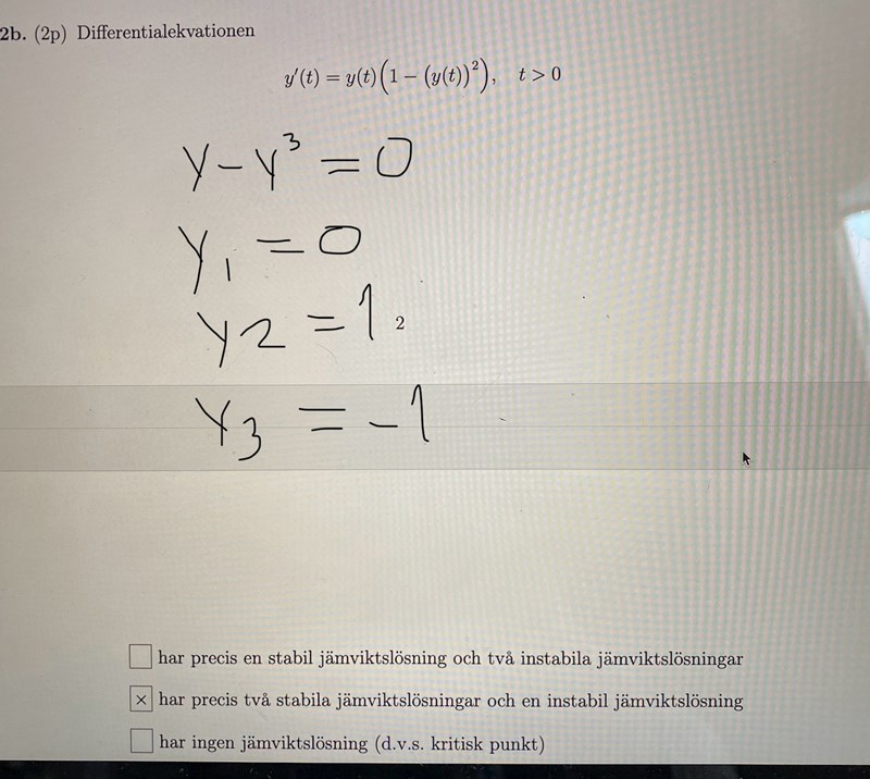 Jag testade att derivera HL för att på så sätt få g’(y1,2,3) och om g’>0 så instabil, g’<0 stabil. men allt blev bara 0 då.