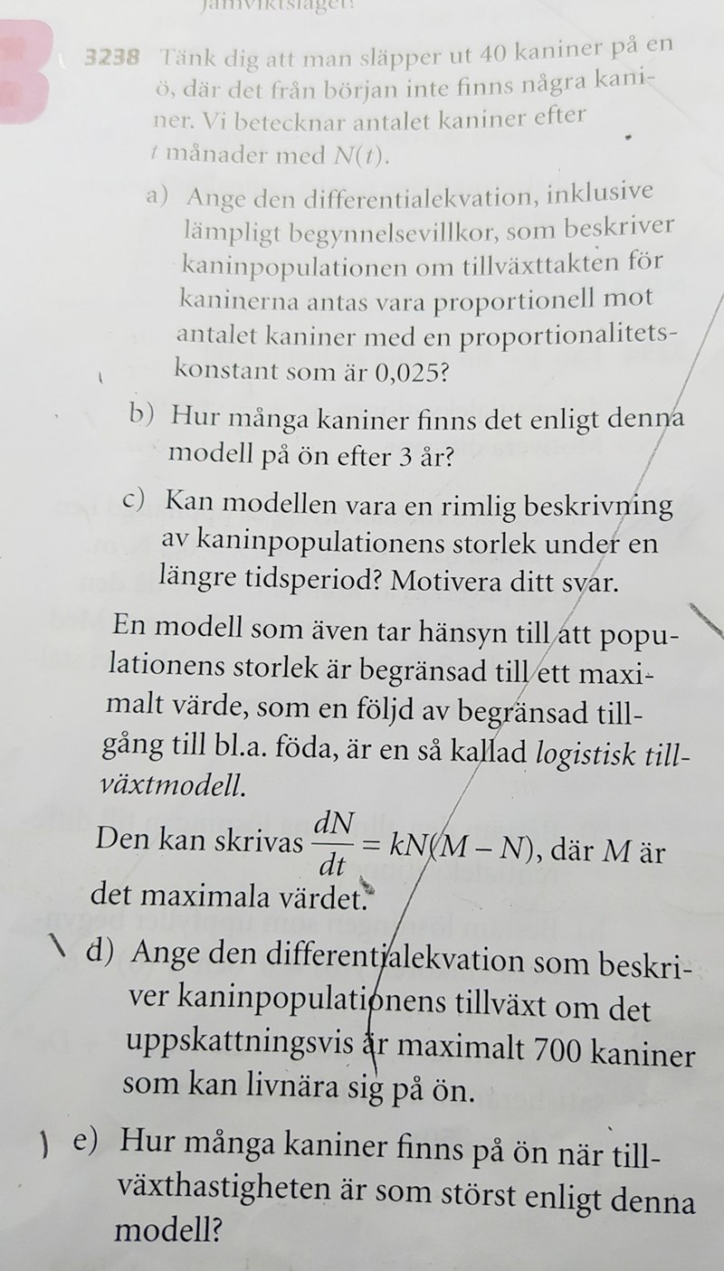 Jag är på d). Varför är det inte N'=k*N(700-N) utan N'=k*N(1-(N/700))?