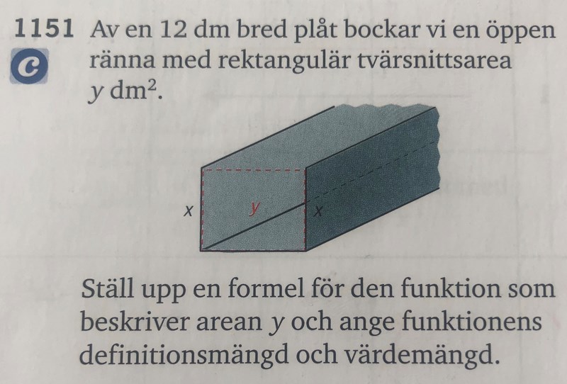 Ställ sedan upp ett uttryck för tvärsnittsarean y som endast beror av x.