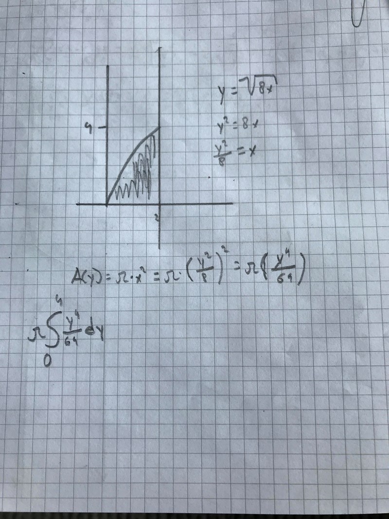 Vad är radien då? Jag tänker att x=2 får fungera som y-axeln, och att man sedan löser fram X och låter X vara radien. X som då motsvaras av y^2/8