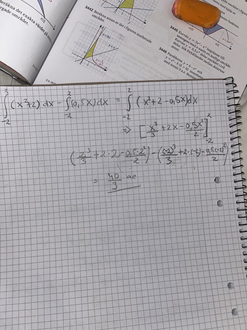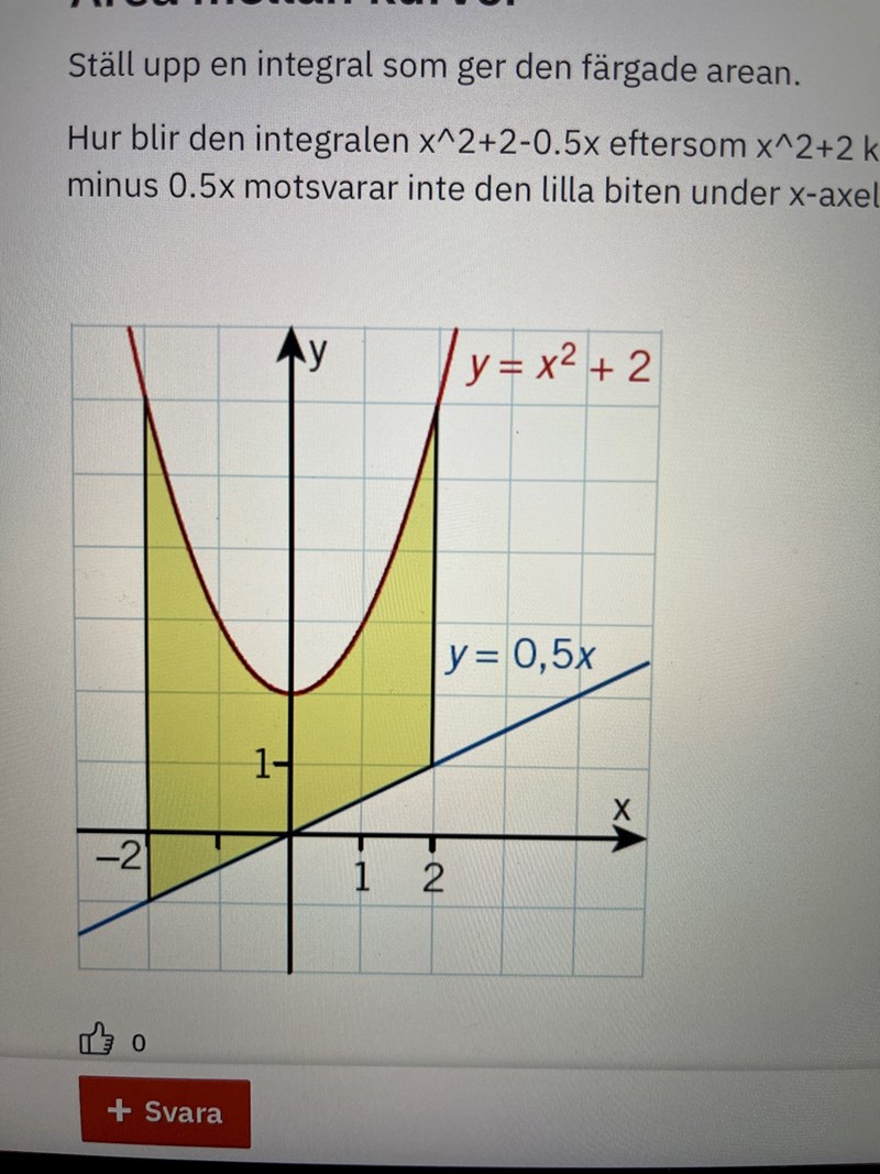 Då arean som 0.5x tillför är lika stor som arean den tar bort