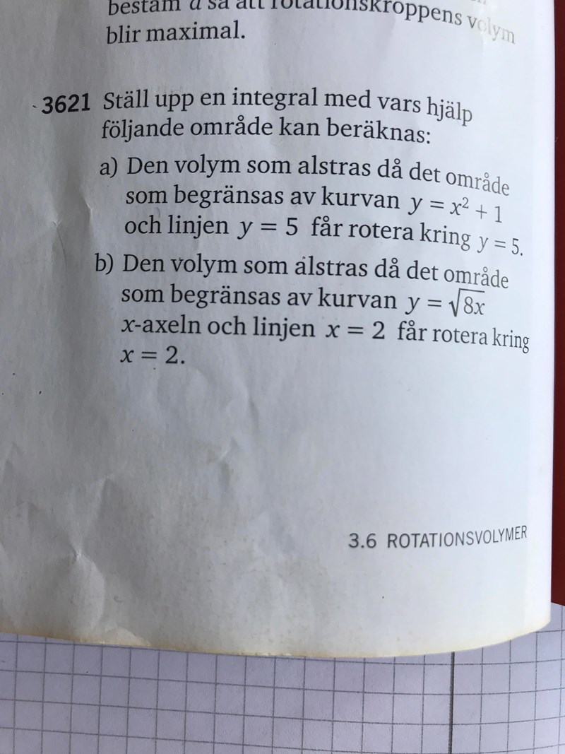 Ställ upp en integral (rotationsvolymer)