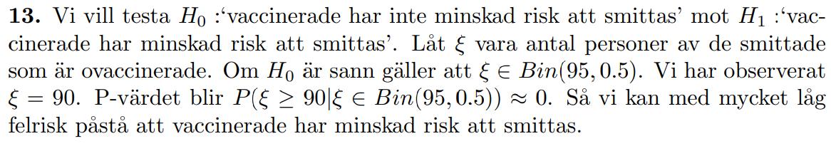 En möjligt tolkning av P(X>=90), då X~Bin(95,0.5):