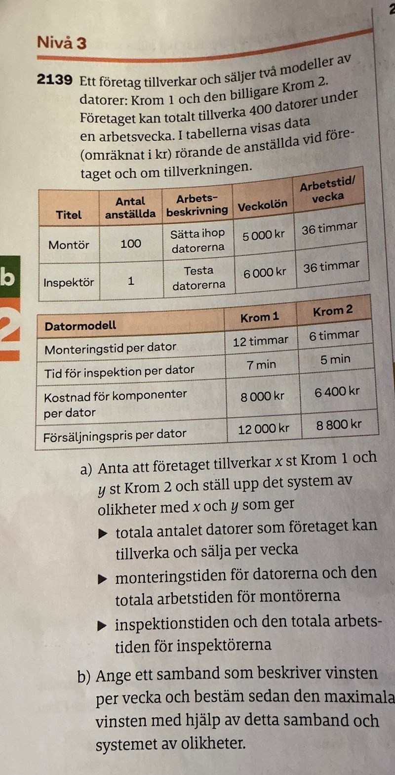 Ställ upp ett system av olikheter, ett samband och bestäm vinsten.