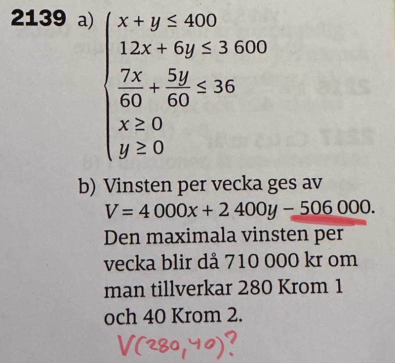 sedan förstår jag inte varför de drar av 506 000kr. I målfunktionen/vinsten så räknar ju både jag och boken bort kostnaden för komponenterna.