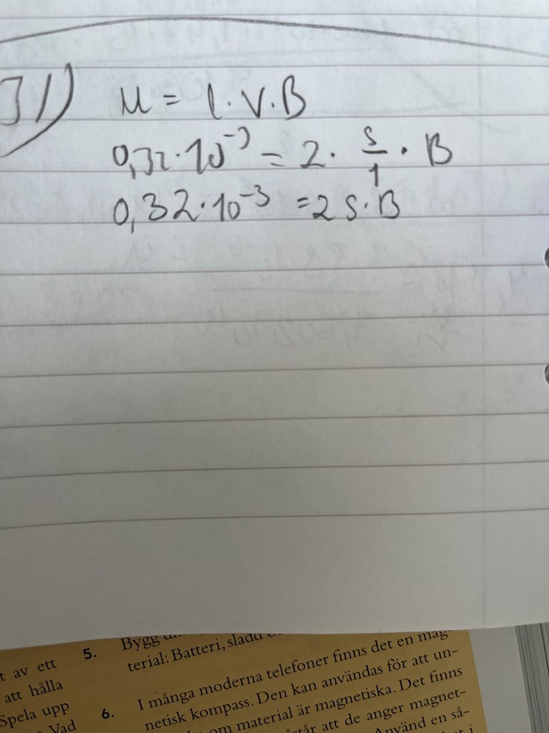 Sedan räknar du ut v vid 3 s och använder värdet på B som du räknat ut ovan.