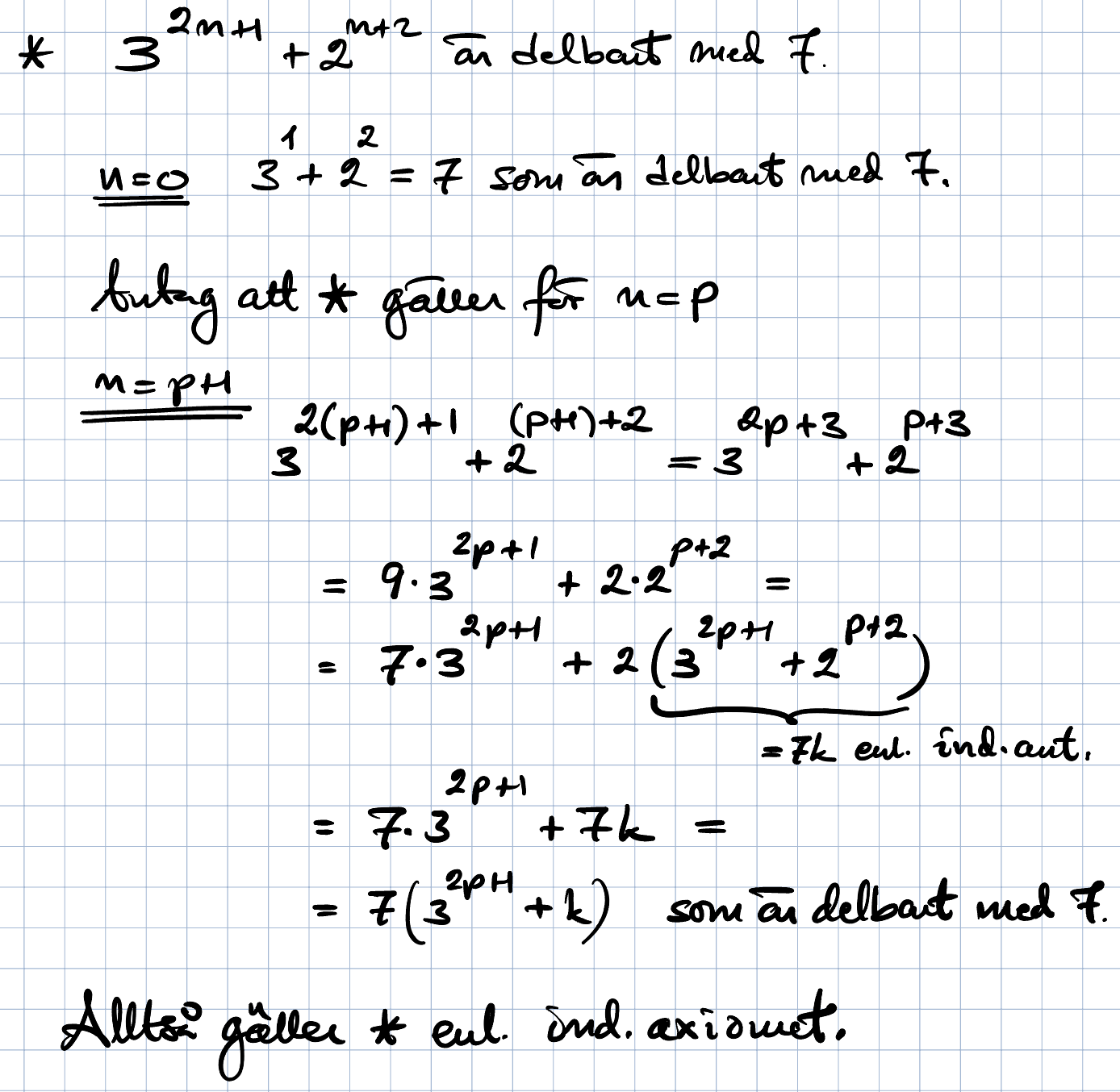 Visa att 32n+1 + 2n+2 är delbart med 7, n tillhör de naturliga talen. Induktionprincipen.