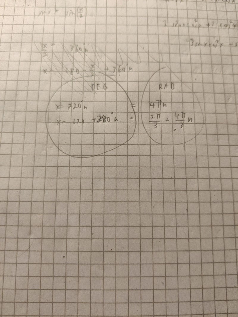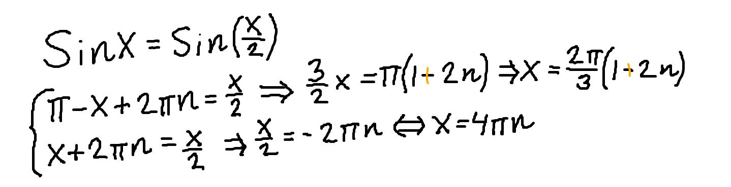 Jag har suttit lite med ekvationen sinx=sin(x/2) och jag tror att jag har fått rätt lösningar:
