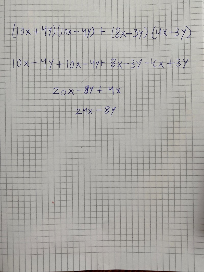 sictransit skrev:Nej, om det inte är något tecken mellan parenteserna så är det multiplikation. Första termen blir 100x2-16y2.