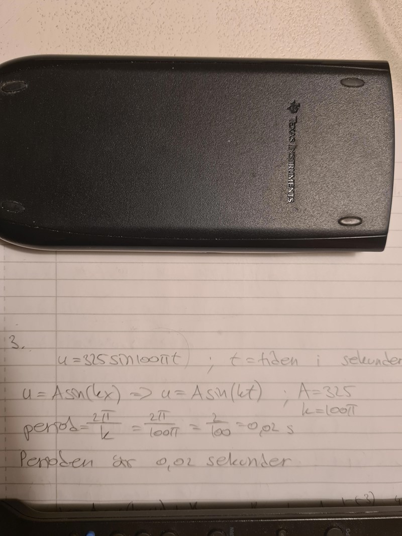 I denna uppgift fick jag att perioden är 0,02 s. Stämmer lösningen?