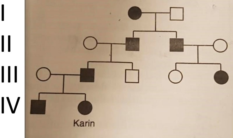 Men då skulle det alltid vara 25% chans att barnen i generation (II), (III) och (IV) skulle bli friska, men anlagsbärare. Nu ser det inte ut så i släktträdet, utan minst 50% av alla barn är sjuka, till och med 100% i generationerna (II) och (IV).