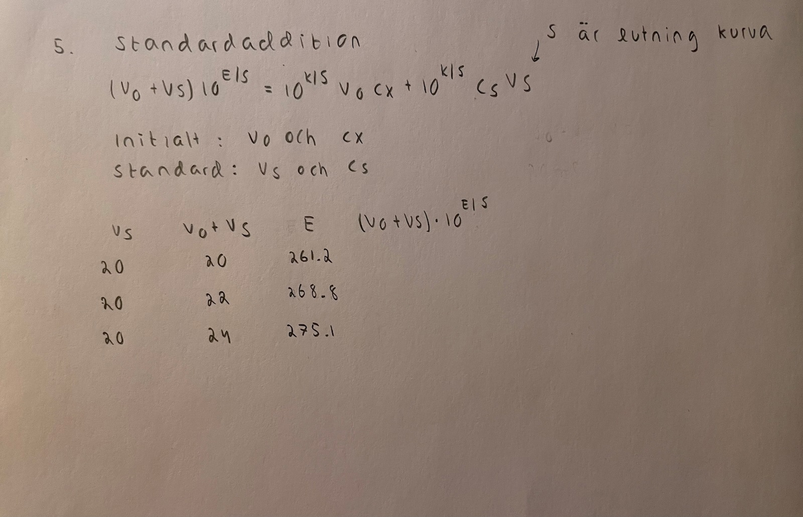 KCl och potentialen uppmättes till 268,8 mV. Ytterligare en standardtillsats på 2,00 ml