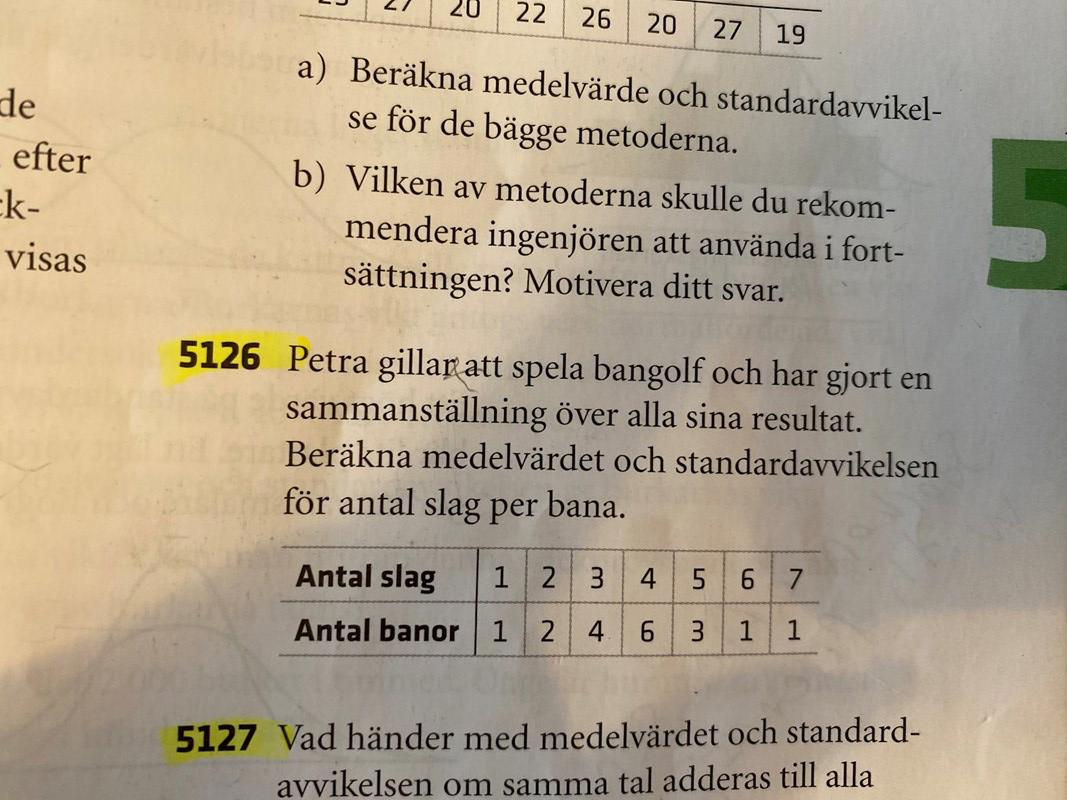 Jag vet hur jag ska beräkna medelvärdet oxh standardavvikelsen i desmos, men hur gör jag nu när det är medelvärdet och standardavvikelsen för antal slag PER bana?
