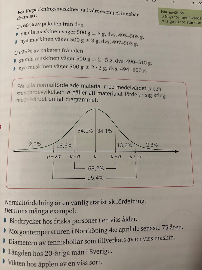 Vi ser i grafen är intervallet [my+sigma, my+2sigma] finns med (13,6%).