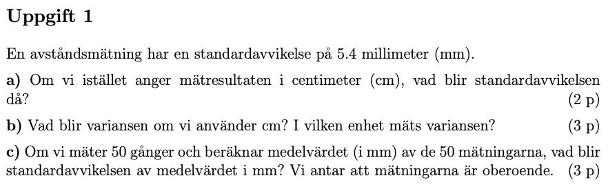 EN mätning av avståndet har standardavvikelsen 5,4 (mm). Det är känt.