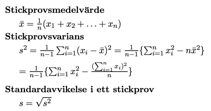 Om du tar roten ur resultatet får du stickprovsvariansen.