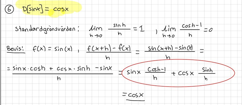 Du har alltså två SGV där du ringat in. Den vänstra termen blir 0 och den högra blir cosx*1.