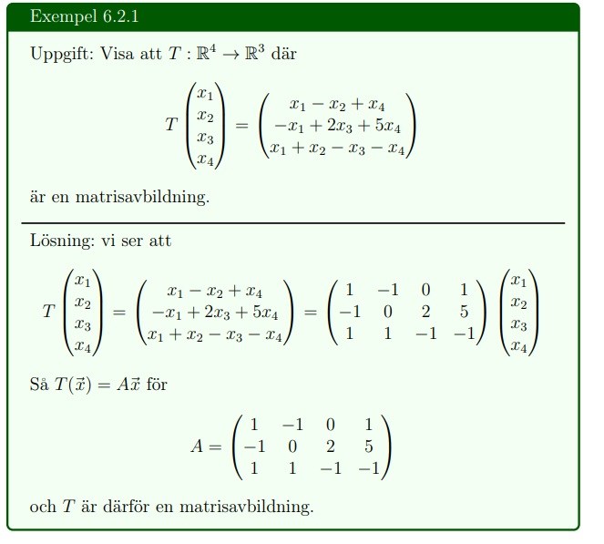 Alla linjära funktioner har en matrisavbildning och kraven för att en funktion ska vara linjär är följande: