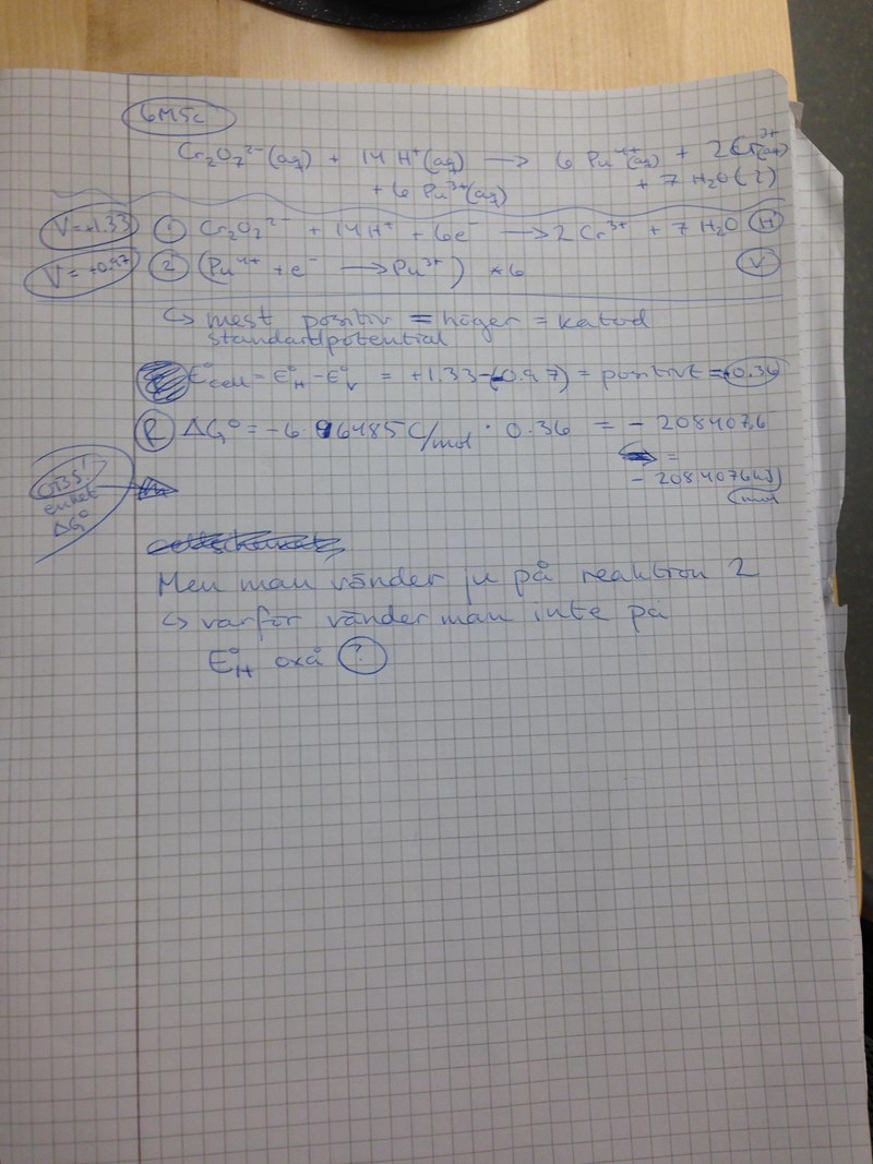 Uppgiften är att ta reaktionen längst upp på pappret, avgöra om K>1 (vilket ju kan fås fram genom att se om E(noll)(cell) är större än noll.