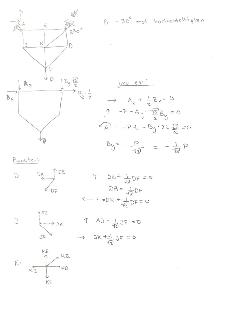 Ska beräkna dragkraften mellan J och K men får inte till friläggningen av punkterna...Finns det någon som kan hjälpa till så att jag förstår samt vad slutresultatet ska bli? Har även försökt räkna ut det med hjälp av Ansys men något blir tokigt där med.