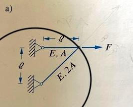 Men när du säger det måste ju förskjutningen vara samma för båda då de sitter ihop. Mitt svar på a-uppgiften är korrekt, trots att jag endast räknat ut förlängningen av stång 1. Jag tänker att knutpunkten borde förflytta sig åt höger och neråt. Detta eftersom stång 2 är konstant i längd.