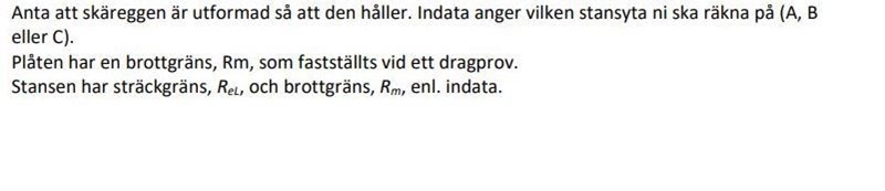 Stanskraft A = Plåtskjuvkraft Hål A .......lös ut rA