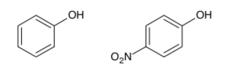 Svaret ligger i hur denna nitrogrupp påverkar hydroxigruppen, via benzenringen.