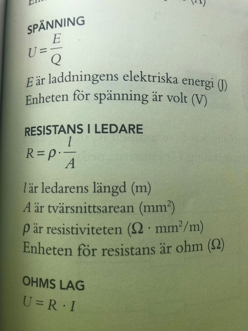 Du har fortfarande använt fel värden. Hur hög är koppars (elektriska) resistivitet enligt din formelsamling? Med både mätetal och enhet.