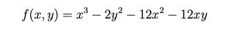 Du kanske tänkt rätt, men dina partialderivator stämmer inte. Sista termen i respektive derivata blir inte -12.