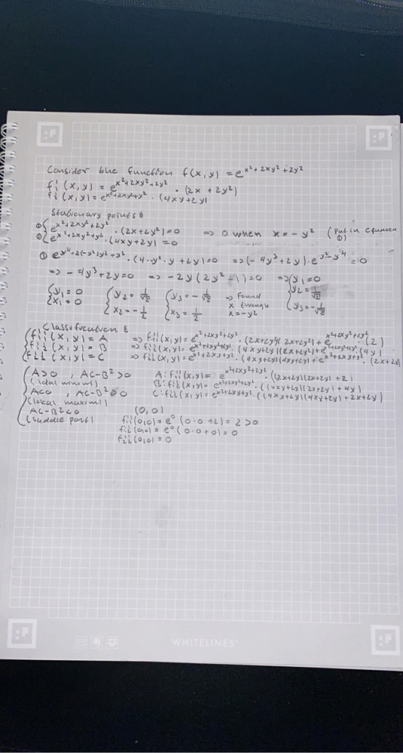 Frågan är: "Consider the function (Find the stationary points and classify them)"