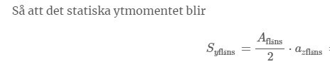 Jo , men jag har tyvärr fortfarande inte lyckats tolka hur exakt formeln för det statiska momentet för flänsen ges.