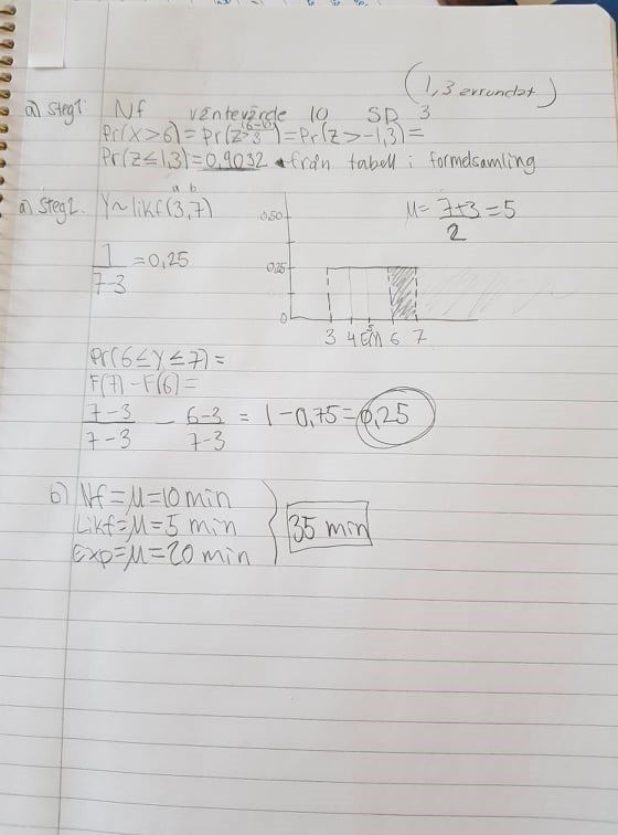 Albiki skrev:Föreläsaren har en poäng, men vad skulle förklaringen i detta fall vara? Att det blir enklare att beräkna om slumpvariablerna är oberoende? Då kan man lika gärna anta att slumpvariablerna har samma fördelning, exempelvis N(10,3), för att göra det riktigt enkelt för sig. Det skulle särskilt underlätta vid lösning av Uppgift c ...