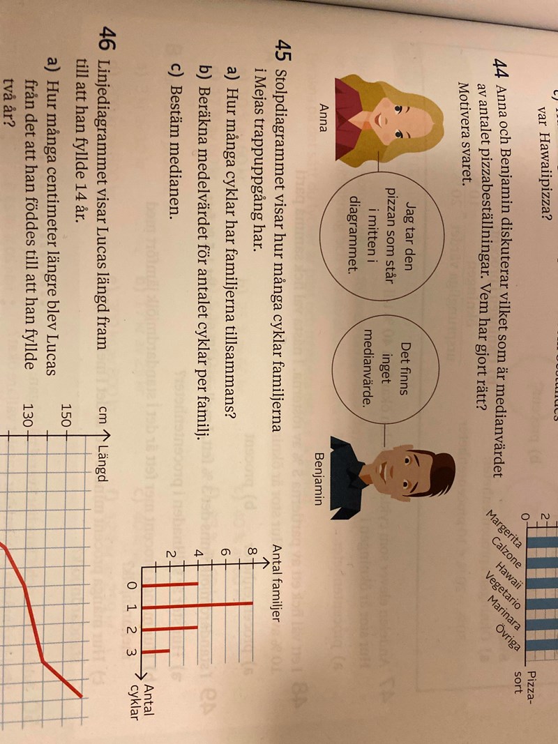 Medelvärdet beräknas genom att man dividerar summan av alla värden (se ditt svar från fråga 45a) med antalet värden (familjer i ditt fall). - 45c: