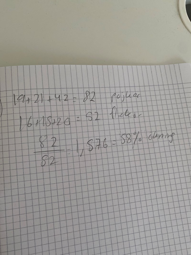 Nej jag räknade ihop killar och tjejer och sen delade kille/tjej antalet