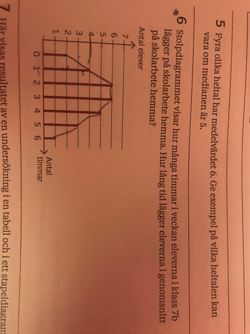 Medelvärdet är 6 men då de mellersta talen är 5 och 6, så blir medianen 5,5.