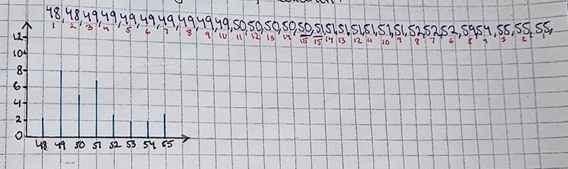 Hej, i facit står det att svaret ska vara medianen 51, men är det inte 50.5 för att 50+51 är 101/2 då blir det 50.5